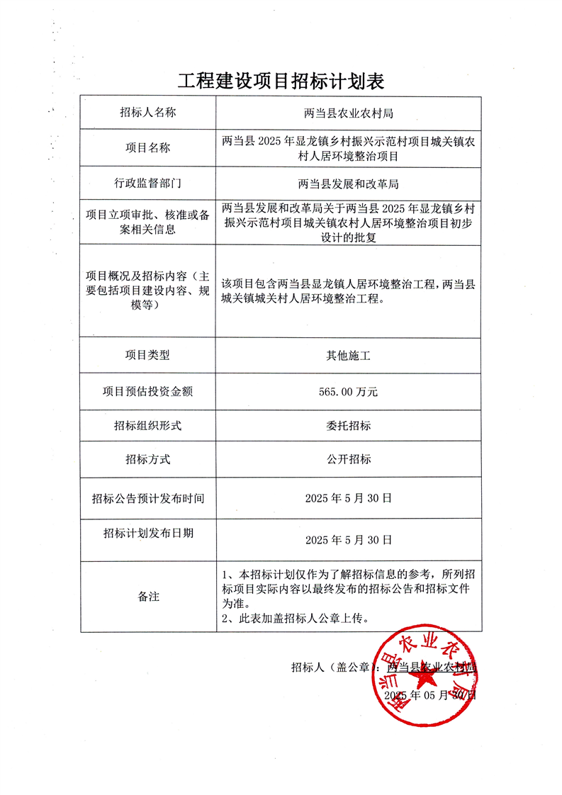 附件:招標(biāo)計(jì)劃表兩當(dāng)縣2025年顯龍鎮(zhèn)鄉(xiāng)村振興示范村項(xiàng)目城關(guān)鎮(zhèn)農(nóng)村人居環(huán)境整治項(xiàng)目.pdf