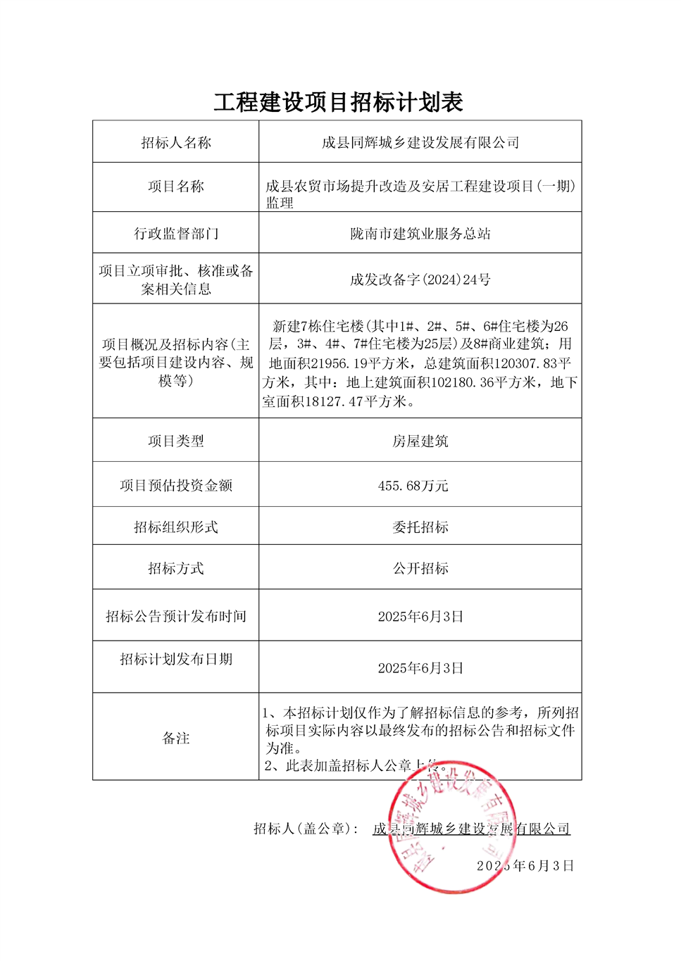 成縣農(nóng)貿(mào)市場(chǎng)提升改造及安居工程建設(shè)項(xiàng)目(一期)監(jiān)理