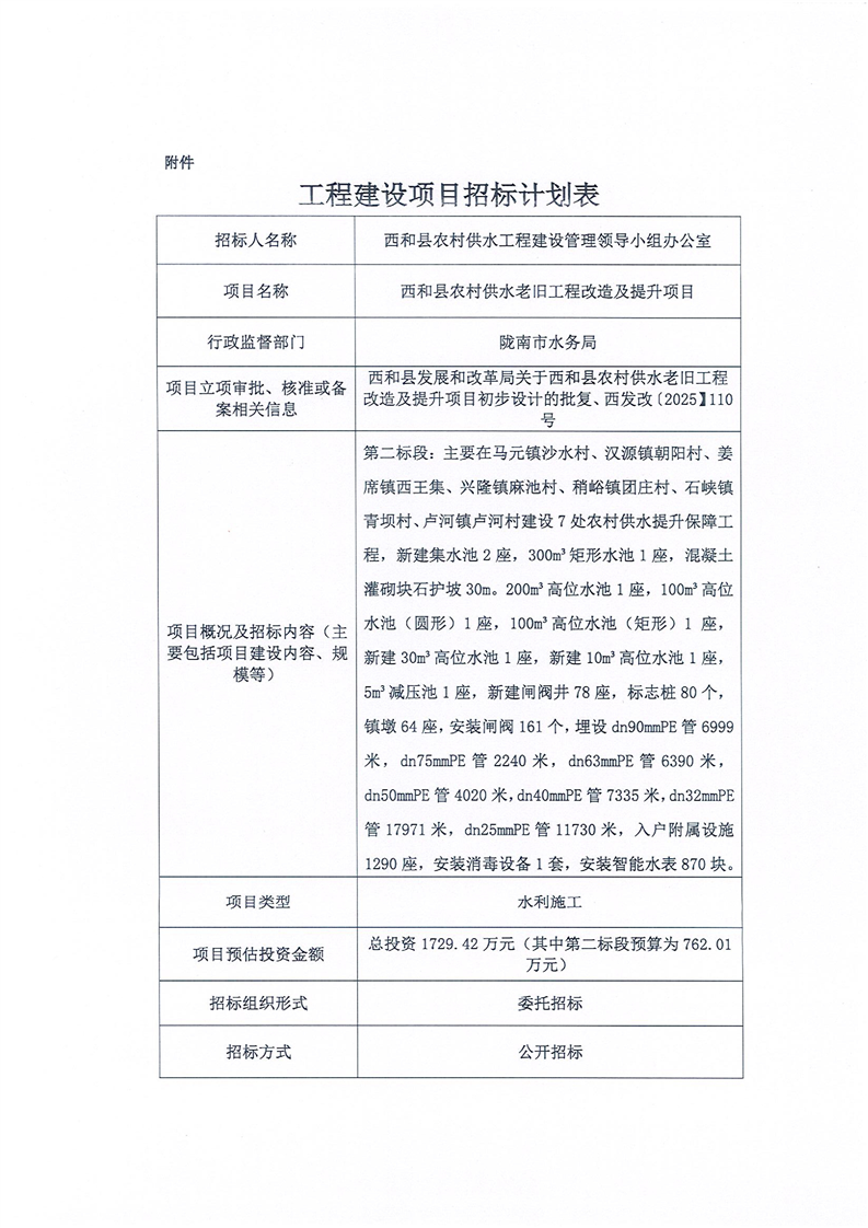 西和縣農(nóng)村供水老舊工程改造及提升項目