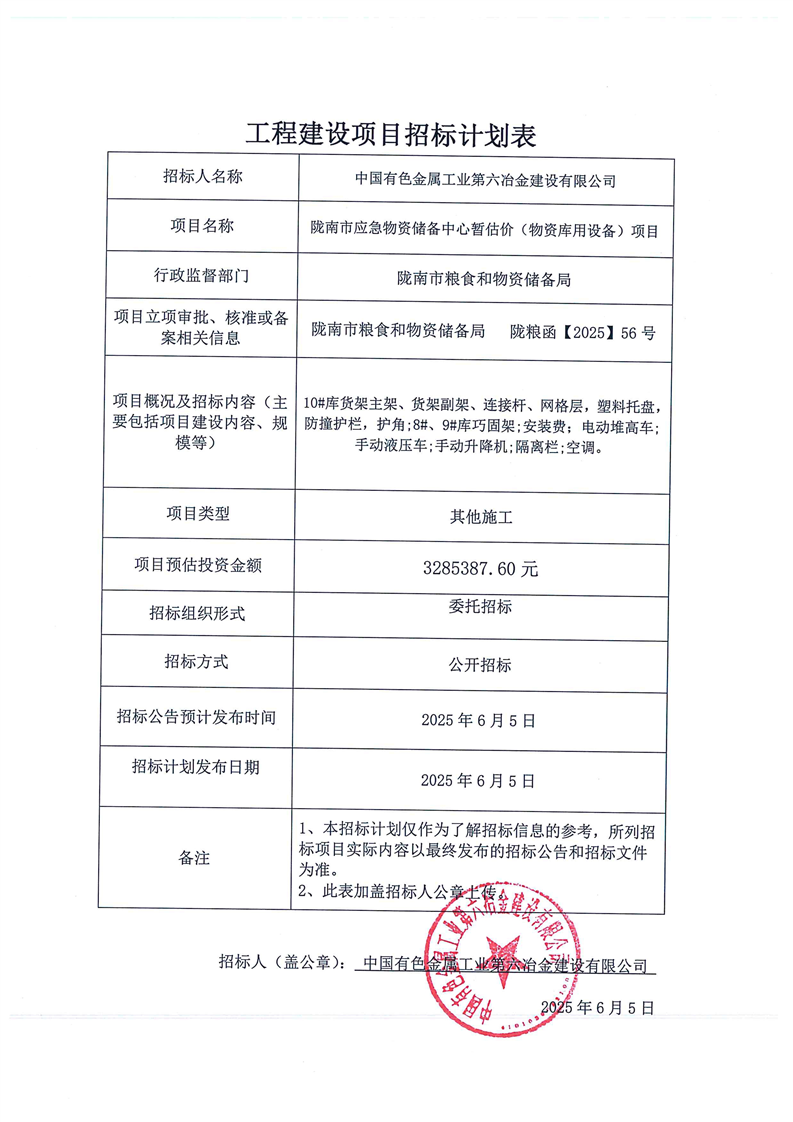 隴南項目暫估價物資庫用設(shè)備招標(biāo)計劃表(1).pdf