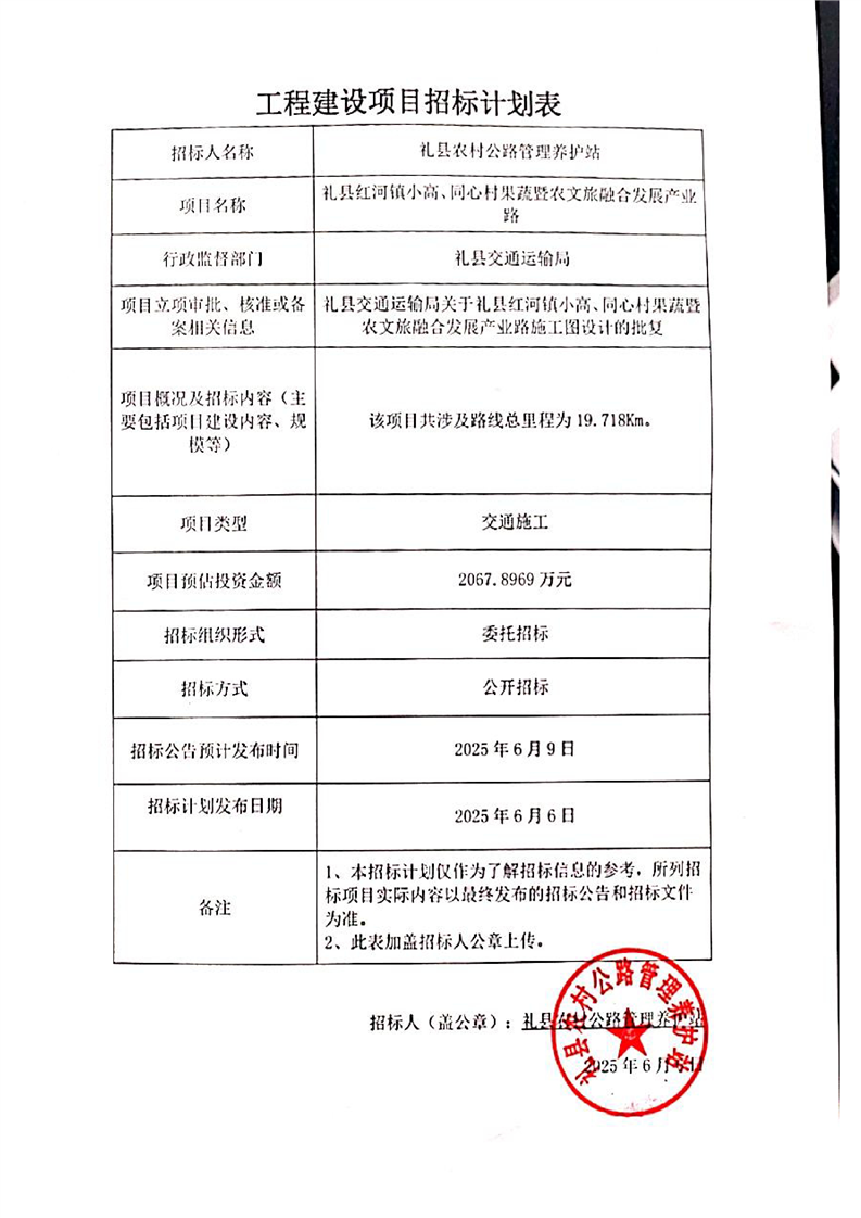 禮縣紅河鎮(zhèn)小高、同心村果蔬暨農(nóng)文旅融合發(fā)展產(chǎn)業(yè)路