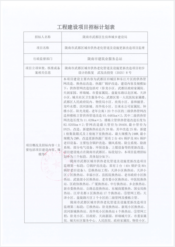 隴南市武都區(qū)城市供熱老化管道及設(shè)施更新改造項目監(jiān)理