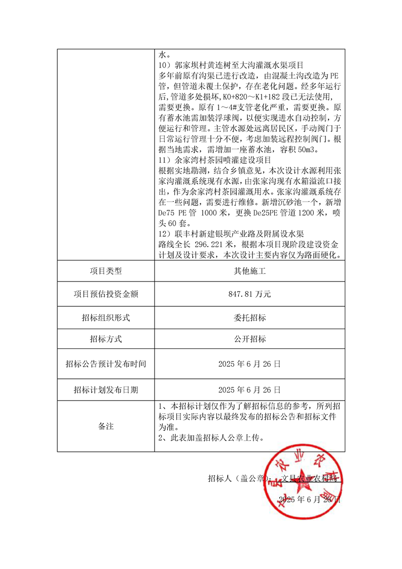 文縣2025年(第一批銜接資金)丹堡鎮(zhèn)等4鄉(xiāng)鎮(zhèn)農(nóng)田水利及產(chǎn)業(yè)路建設(shè)項(xiàng)目(二次發(fā)布)