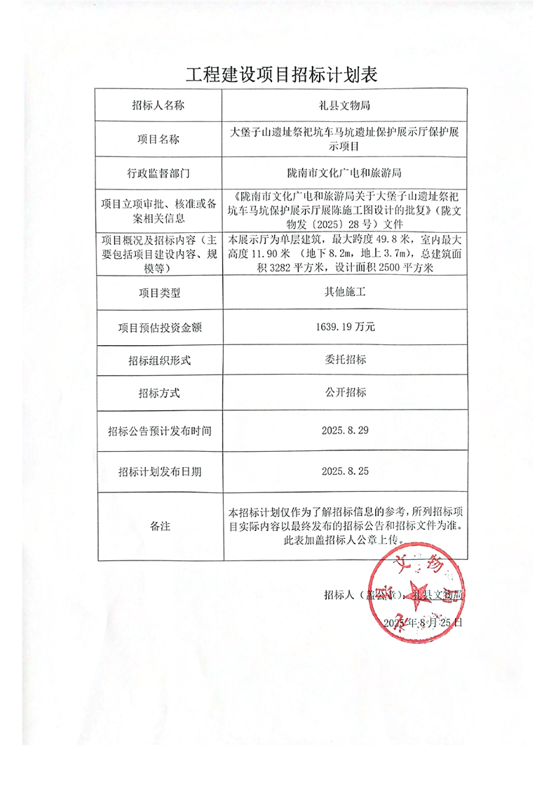 大堡子山遺址祭祀坑車馬坑遺址保護(hù)展示廳保護(hù)展示項目