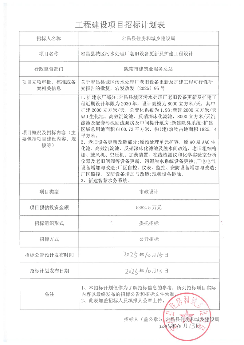宕昌縣城區(qū)污水處理廠老舊設(shè)備更新及擴(kuò)建工程設(shè)計