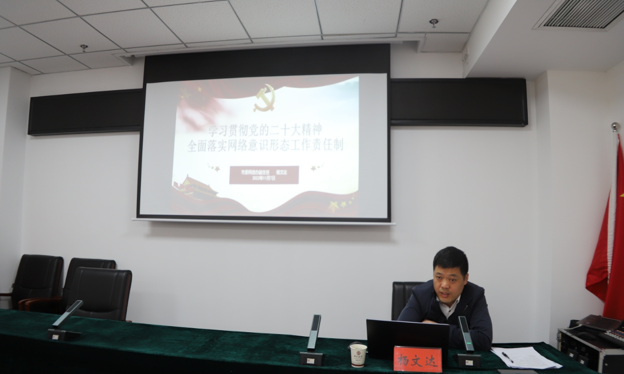 11月7日,楊文達同志以“學習貫徹黨的二十大精神,全面落實網(wǎng)絡(luò)意識形態(tài)工作責任制”為題作了專題培訓
